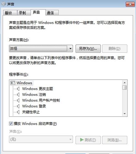 - 开始——控制面板-——双击“声音与音频设备”——声音方案——点击声音方案的那个下拉框——选择"windows默认"——点“应用”——点“确定”即可