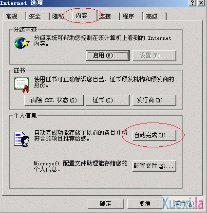 点击打开“内容”子对话框,单击“自动完成”。