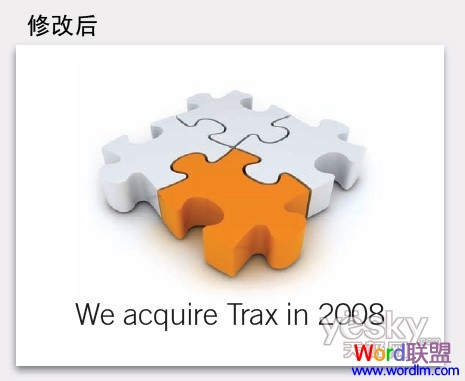 太多东西了!这张幻灯片基本上就象你所写的一个便条,但在视觉上,它毫无作用。