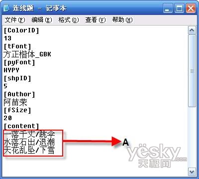 如果我们需要将连线题模板中的所有题目删除并添加自己所需要的题目,将图2中A处的所有文字替换为自己所要添加的连线题就可以了。需要注意的是,在添加连线题目的过程中,每道题目和与之对应的正确答案必须独占一行,并且这两者之间用正斜杠“/”分开。