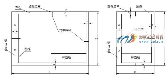 图框线必须用粗实线绘制。图框格式分为留有装订边和不留装订边两种,如图1-2和图1-3所示。两种格式图框的周边尺寸ace见表1-1。但应注意,同一产品的图样只能采用一种格式。