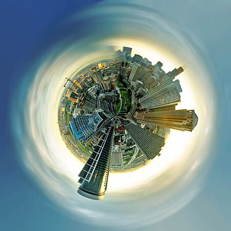 | 3、执行:滤镜 > 扭曲 > 极坐标,选择“平面坐标到极坐标”。 |