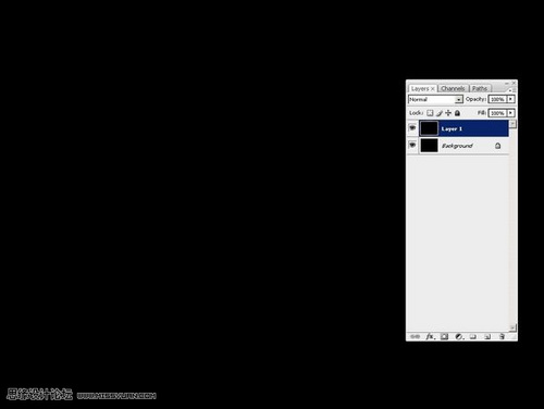 | 1、创建一个新文件,尺寸按自己需要进行设置(建议为1280*960)。将前背景色设置为默认(按D键),使用油漆桶工具(G)将其填充为黑色。复制背景图层一次(Ctrl+J)。 |