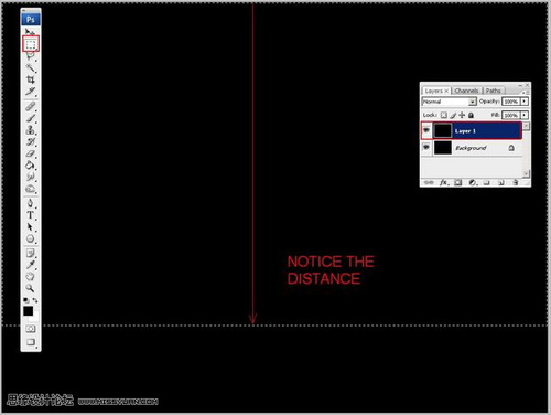 | 2、使用矩形选框工具(M)创建一个选区,宽度与图层一样,高度约为80%。 |