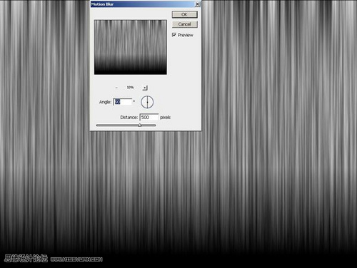 | 4、选择滤镜/模糊/动感模糊,设置角度为90,距离为500,效果如下。 |