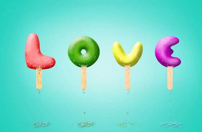 | 2、选择文字工具(t)然后分别在画布上打上LOVE 4个字母(每个字母一个图层)。 |