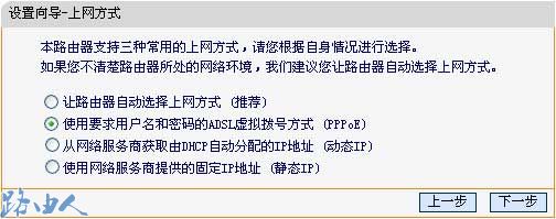 (3)单击下一步,进入上网方式选择画面,一般家庭用户所采用的PPPOE拨号上网的方式