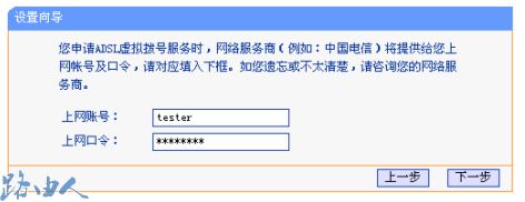 ADSL接入分为ADSL MODEM和ADSL ROUTER,如果是ADSL ROUTER,需要先连接TP-LINK路由器,然后登陆TP-LINK路由器的WEB管理界面,通过“设置向导”选择ADSL虚礼拨号方式,将服务商提供的“上网帐号”和“上网口令”填入相应位置后,点击下一步就可以了。