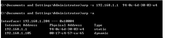 (2)通过arp –s 网关IP地址网关MAC地址的命令方式,在计算机上绑定即可。
