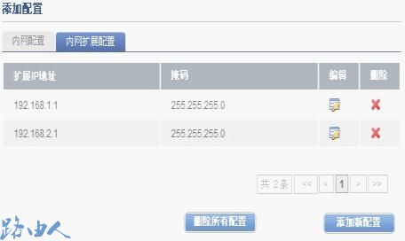 除内网设置一个IP地址外,可以通过两种方式设置另外两个内网扩展地址: