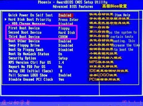 AWARD BIOS(另外一种)设置光驱启动方法: