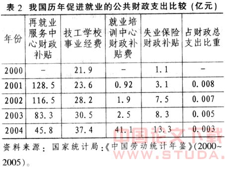 (一)财政政策的公共化取向尚未完全建立,就业政策多重目标的实现缺乏足够的物质基础