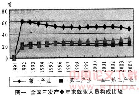 经济高增长与低就业甚至无就业(女性、年轻人)并存的原因之一在于就业机会的结构性变化。我国的产业结构逐渐由劳动密集型进人资本密集型,资本取代劳动力致使重工业化产业吸纳劳动力的能力逐年降低,而劳动密集型的中小企业及第三产业成为吸纳劳动力的主力军(见图一)。产业结构的调整必然带来职业技能结构的调整,第二产业就业弹性的先扬后抑,第三产业的不断上升,要求劳动力具备越来越高的素质和技能。财政政策却没有对就业机会的结构性变化作出及时的调整。投资导向仍然偏重于资产回报率高的重工业,而对劳动密集型的中小企业和民营企业的财政支持力度不够,税收优惠政策过于短期化,甚至带有明显歧视。同时促进就业的财政补贴政策主要面向失业保险、失业救济,“消极”成分过大,对人力资源的开发重视不够,对农民工、下岗职工、女性求职者缺乏必要的职业教育和培训,无法给中小企业和服务业提供足够的劳动力供给,很多地区出现“技工荒 ”、“民工荒”,劳动力市场出现了结构性失衡。虽然这与我国社会保障制度刚刚起步的特殊国情有关,但财政政策的投资短视行为加剧了这一现象,必须予以改革。
