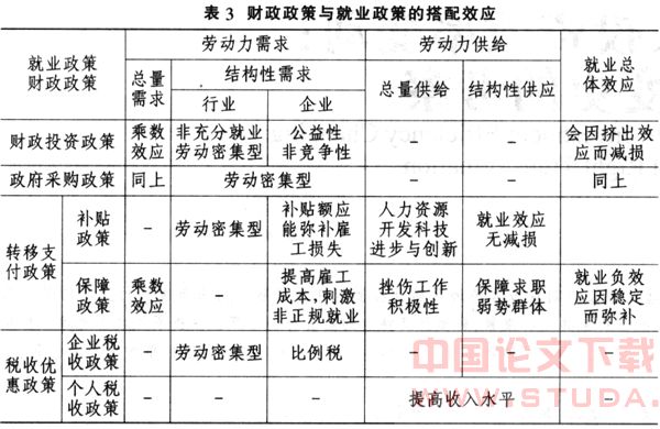 对就业政策与财政政策的原生性效应的分析主要包括财政投资、采购政策的就业效应、财政转移支付政策的就业效应和税收政策就业效应三个方面。