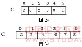 下图给出了Count-Search的运算过程:图1表示初始数组A,C。图2表示运行完程序 2-3行,数组C中的元素C[i]存放的是数组A中等于i的元素个数。图3表示运行4-8行的结果,C中元素C[i]存放的是数组A中小于等于i的元素个数。例如查找该数组第3大的数,则由于C[2]=4>=3,故元素2即为所要查找的第3大的数。