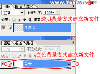 三、图层类型 1.背景图层 每次新建一个Photoshop文件时图层会自动建立一个背景图层(使用白色背景或彩色背景创建新图像时),这个图层是被锁定的位于图层的最底层。我们是无法改变背景图层的排列顺序的,同时也不能修改它的不透明度或混合模式。如果按照透明背景方式建立新文件时,图像就没有背景图层,最下面的图层不会受到功能上的限制(如图3)。 |