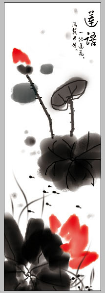 3、现在开始画了,尺寸、布局可以事先在纸上画一下,也可以找幅国画借鉴下。 调节画笔的大小、透明度画出荷花的叶子。