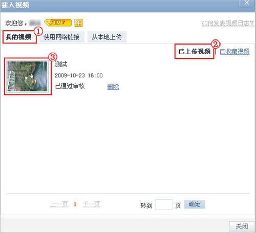 第三步:发表视频日志。